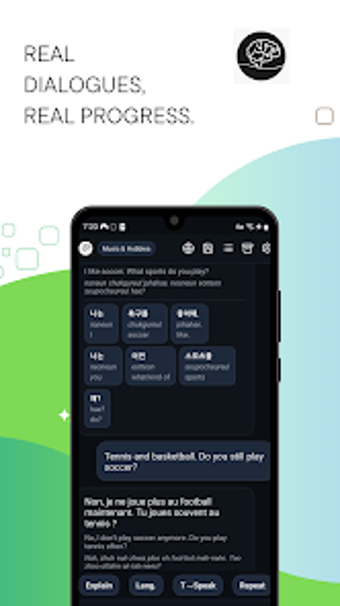 XaiTok là một ứng dụng học ngôn ngữ sáng tạo được thiết kế cho người dùng Android, tập trung vào kỹ năng giao tiếp hơn là việc ghi nhớ máy móc. Nó cung cấp một cách tiếp cận độc đáo, nơi người học tham gia vào các cuộc trò chuyện thực sự với một gia sư ảo, bao gồm nhiều tình huống khác nhau như chào hỏi, phỏng vấn xin việc và đối thoại du lịch. Ứng dụng hỗ trợ nhiều ngôn ngữ bao gồm tiếng Anh, tiếng Tây Ban Nha, tiếng Pháp, tiếng Hàn, tiếng Nhật và tiếng Bồ Đào Nha, làm cho nó trở nên dễ tiếp cận cho một đối tượng đa dạng. Các bài học tương tác được điều chỉnh theo nhu cầu cá nhân, thích ứng với trình độ và tốc độ của người dùng.